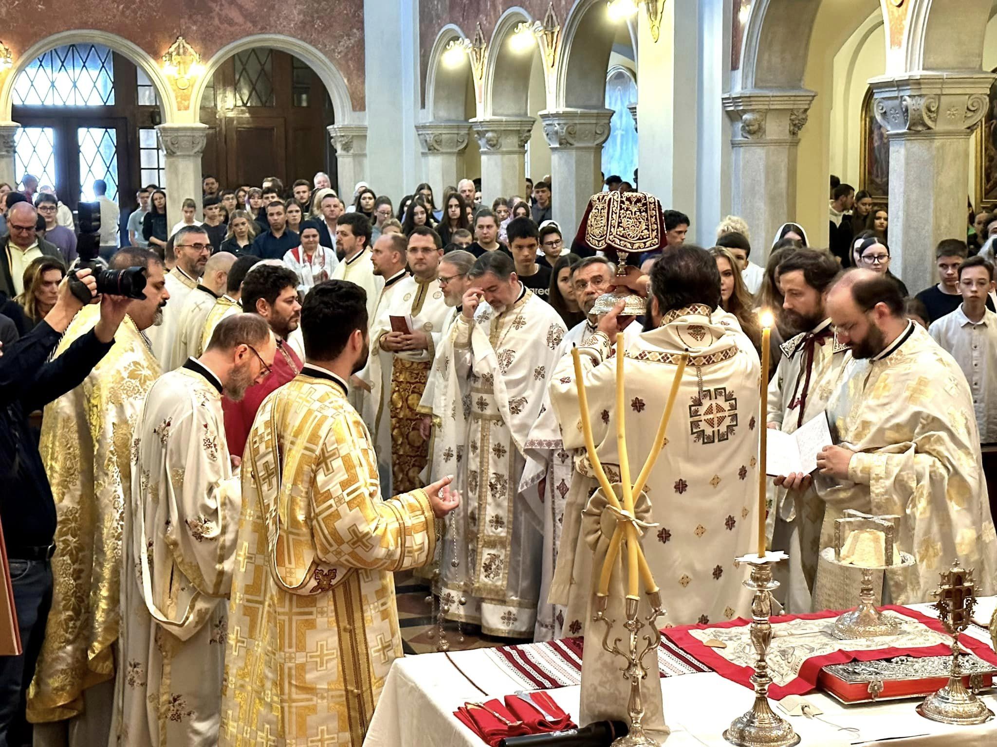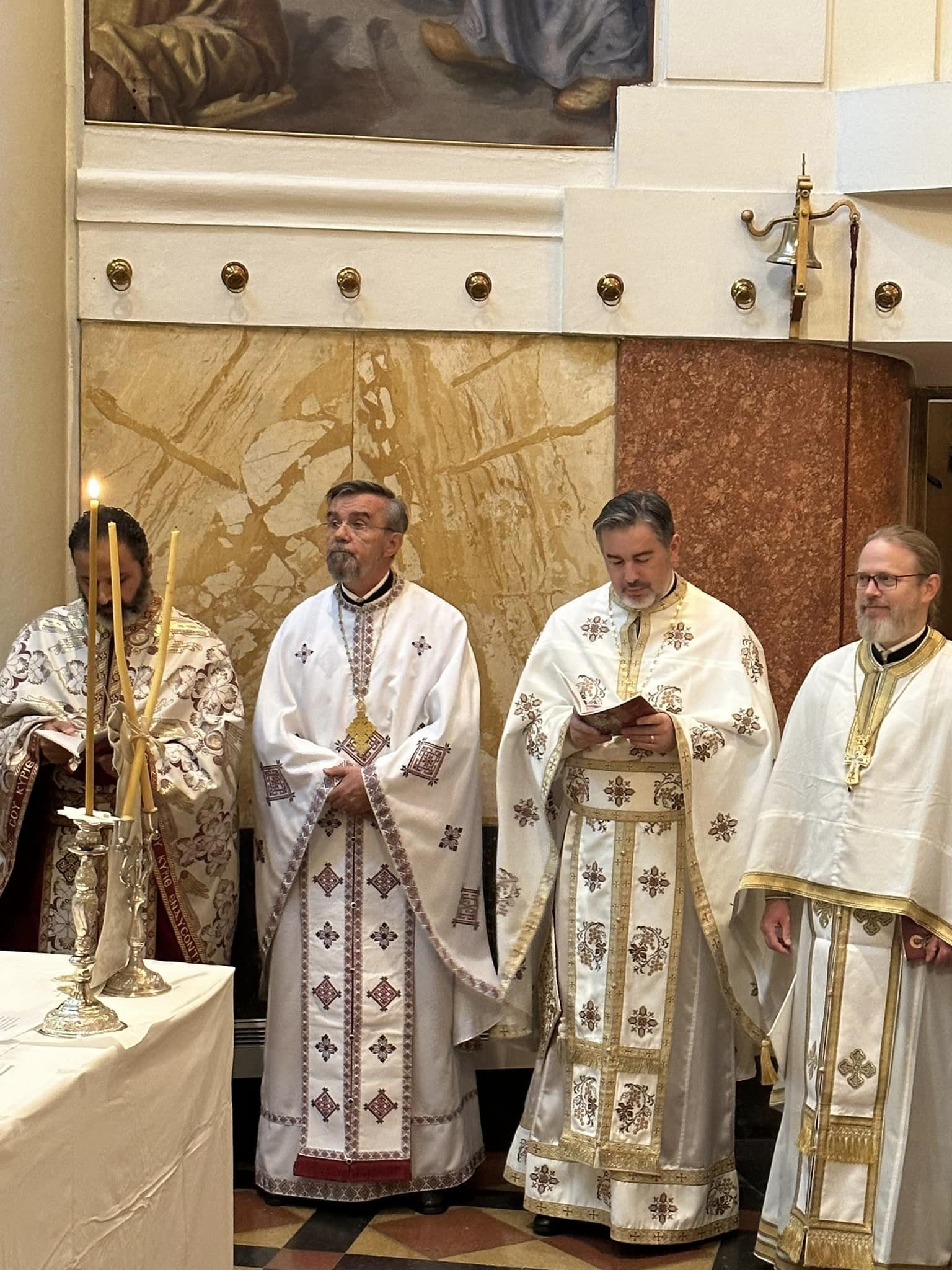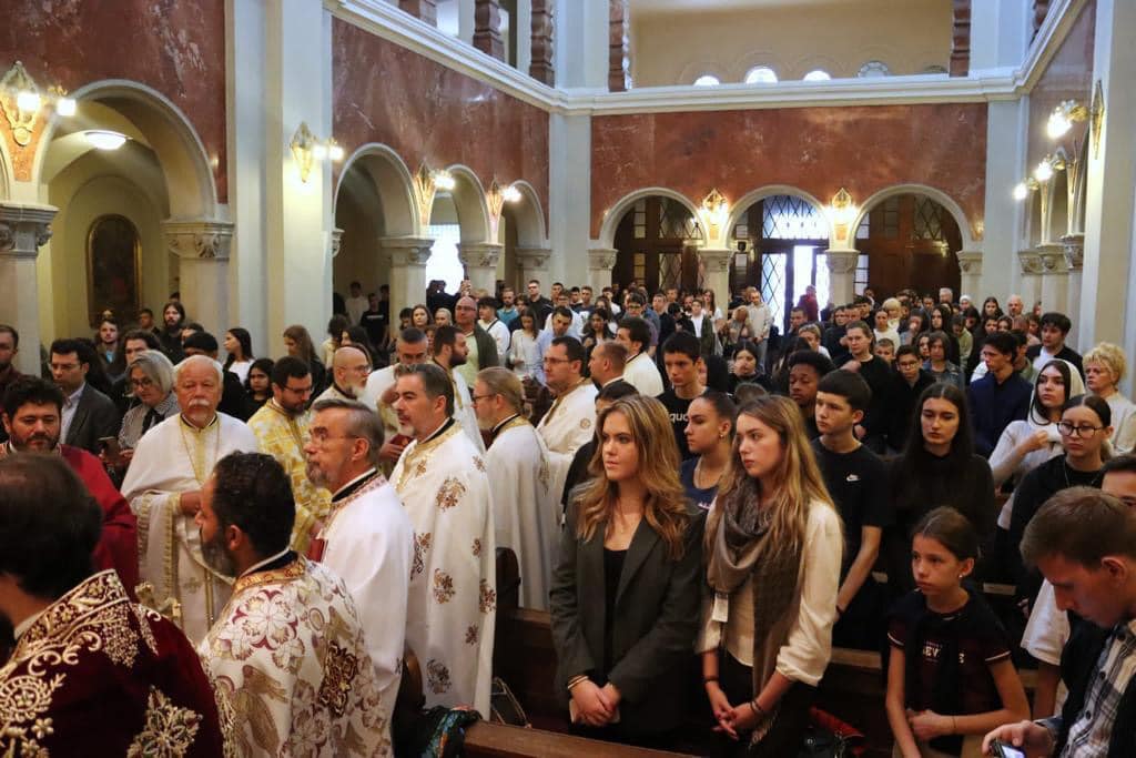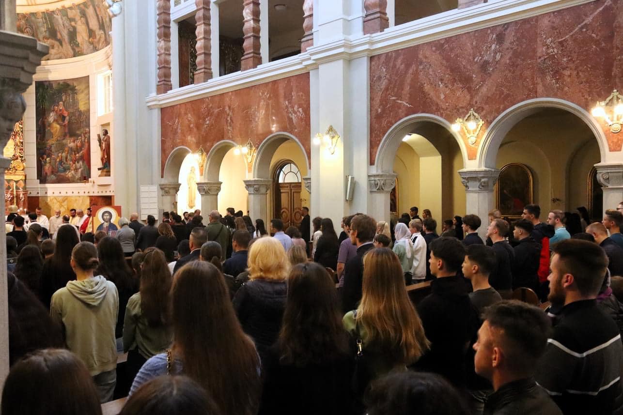 Programul acestei zile a început prin săvârșirea Sf. Liturghii Arhierești, în limba germană, de către IPS Arsenie, Mitropolitul grec al Austriei, înconjurat de un sobor de preoți și diaconi, răspunsurile fiind date de corul psaltic de limbă germană al Mitropoliei grecești. Un moment deosebit a fost cel al primirii Sfintei Împărtășanii, atunci când mulțime de tineri s-au apropiat cu sfială de Sfântul Potir, cuminecându-se.