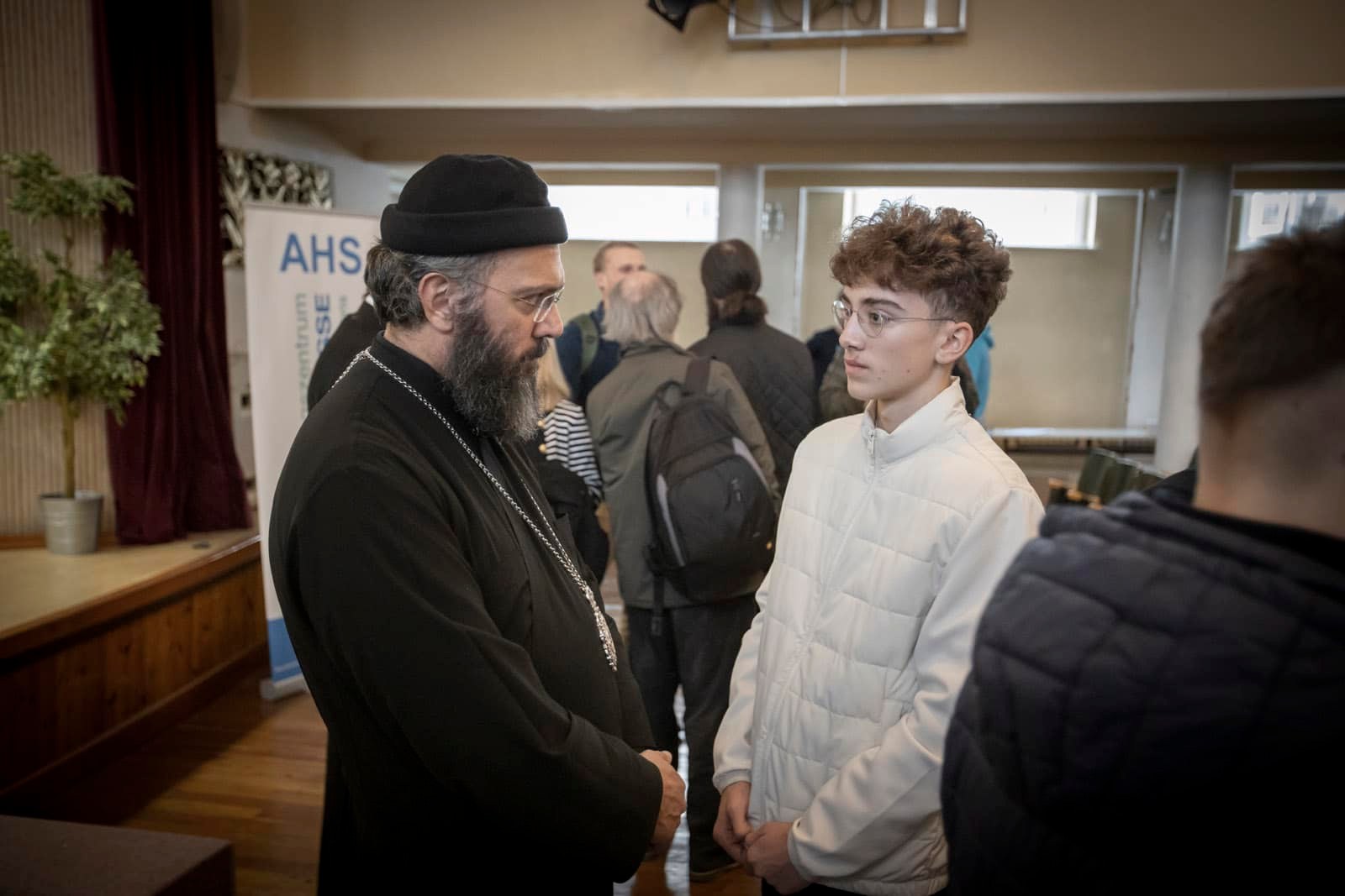Im Festsaal des Campus folgte eine Einführung in das Thema des diesjährigen Treffens durch Metropolit Arsenios von Österreich. In seiner Ansprache sprach der Metropolit über die Bedeutung des Lichts in der Heiligen Schrift und hob die Wichtigkeit eines authentischen christlichen Lebens angesichts der Herausforderungen der modernen Welt hervor. Er ermutigte die Jugendlichen, zu einem Licht für ihre Mitmenschen zu werden. Den Jugendlichen wurde die Möglichkeit gegeben, verschiedene Fragen zu ihrem geistlichen Leben zu stellen.