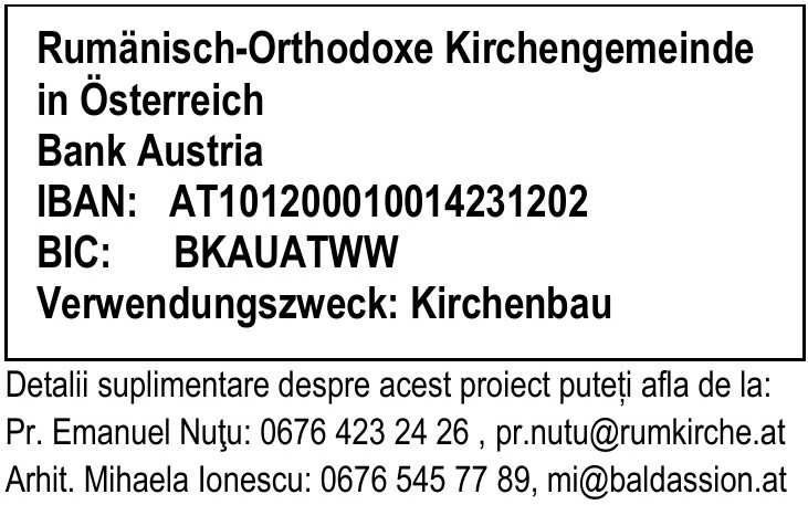 Vă rugăm sprijiniți lucrarea de PICTURĂ în frescă a bisericii prin donații regulate (Dauerauftrag) sau sporadice!
