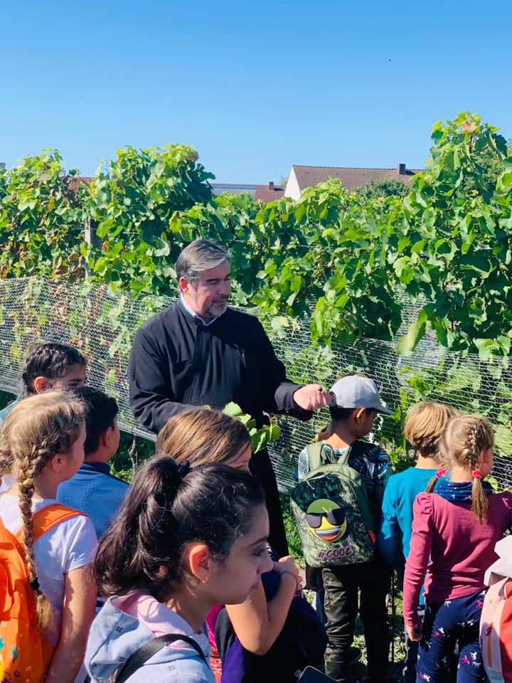 Am vizitat viile familiei, am cules struguri, am degustat must, am povestit despre prezența viei în Sf. Scriptură, am citit și ne-am jucat, cu nădejdea că acești copii vor înțelege mai bine de ce Hristos a ales ca rodul viței să se transforme prin Pogorârea Sf. Duh în Sângele Său, cel dătător de viață veșnică.