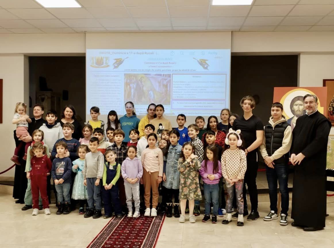 aprilie 24 2024 Copii participanți la activitățile din cadrul Școlii Parohiale admin_parohia_pogorarea Școala Parohială Pedagogii Școlii noastre Parohiale așteaptă cu drag, sâmbătă de sâmbătă, copiii din Parohie pentru a le dărui din priceperea și experiența lor! Multumim și tinerilor voluntari care se preocupă de jocurile interactive cu cei mici!