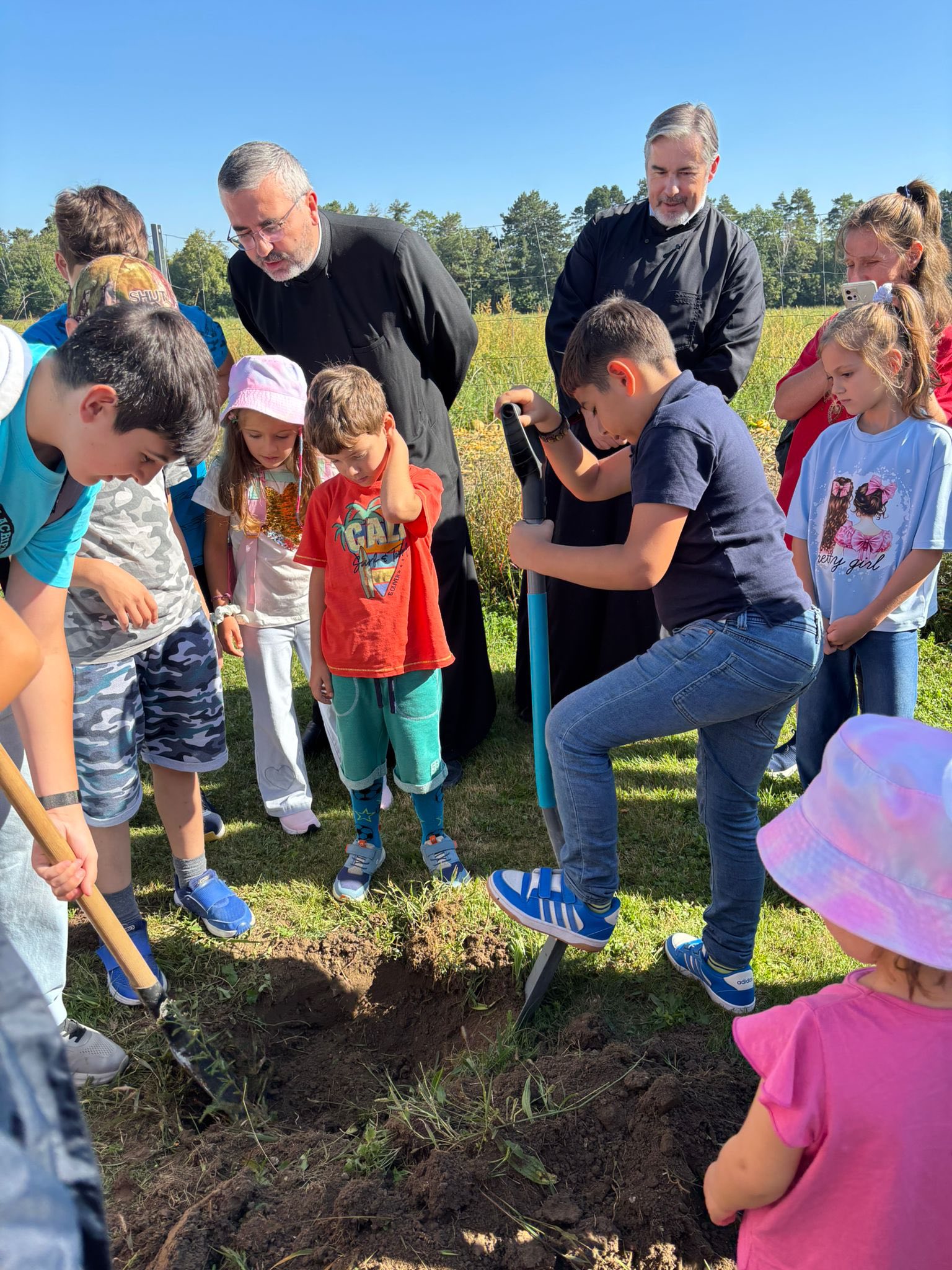 Prima oprire a fost la biserica românească din St. Pölten, cunoscută pentru grija și respectul față de natură, unde părintele Cătălin Soare i-a întâmpinat cu multă căldură. Aici, micii excursioniști au lăsat o amprentă vie prin faptele lor: au plantat un pom de cireș și numeroase flori în grădina bisericii, un gest al frumuseții și al speranței pentru un viitor curat și bine înmiresmat, iar bucuria lor a fost răsplătită prin ospitalitatea gazdelor, într-un moment de comuniune și prietenie.