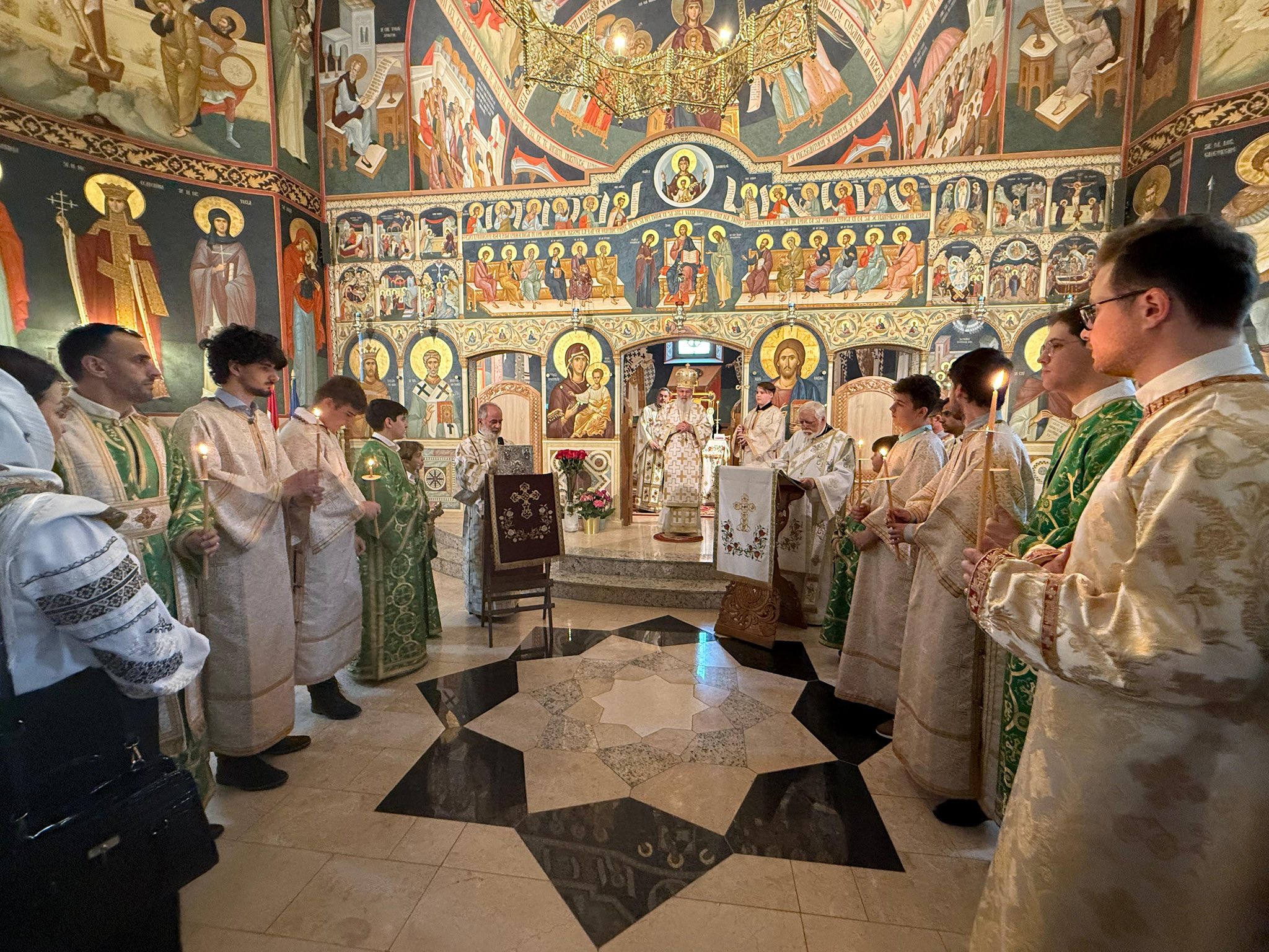 Sâmbătă seara a fost oficiată Vecernia cu Litie în cinstea marii sărbători de a doua zi, slujbă săvârșită de către IPS Părinte Mitropolit Serafim împreună cu un sobor de preoți.