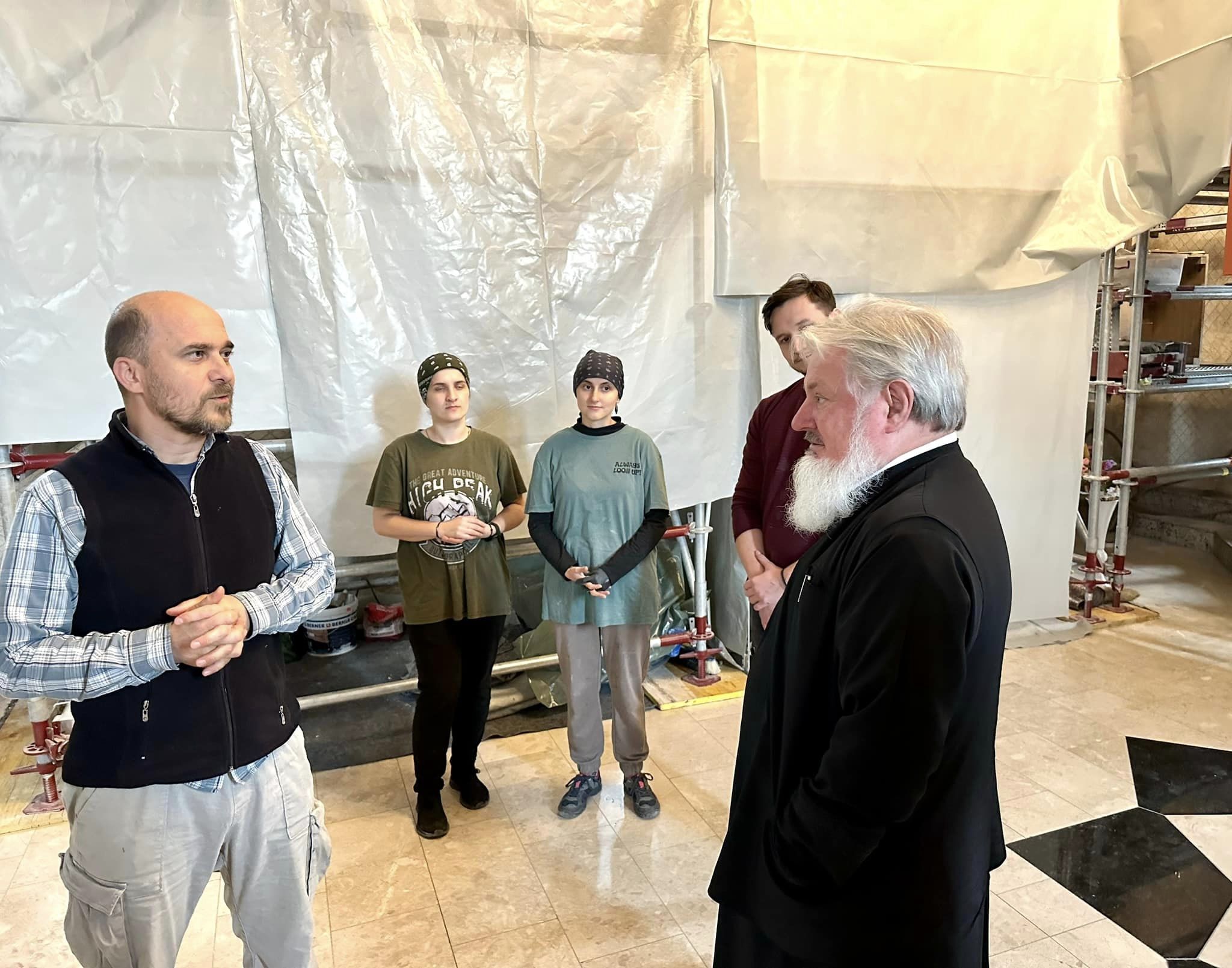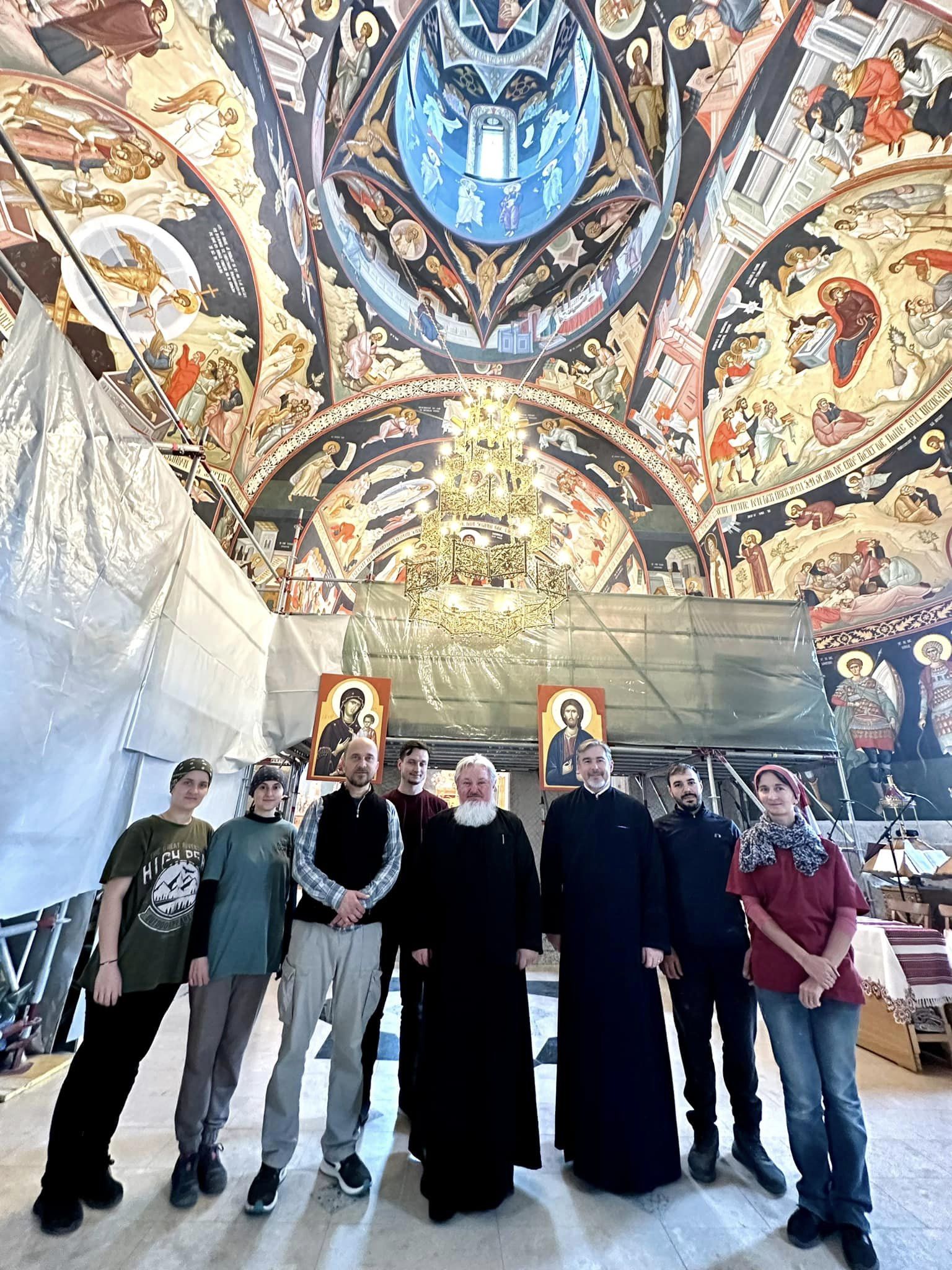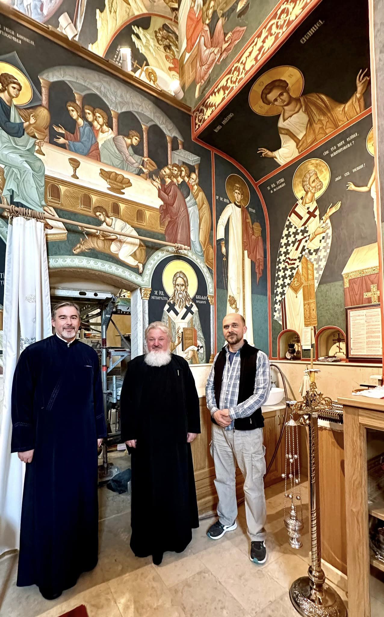 În semn de apreciere, Preasfințitul Părinte a binecuvântat și a dialogat cu echipa de pictori, coordonată de dl. Prof. Alexandru Nicolau care, prin talentul și dăruirea lor, contribuie la înfrumusețarea acestui locaș sfânt. De asemenea, și-a exprimat încântarea pentru calitatea picturii și armonia cromatică, subliniind că această lucrare nu doar împodobește biserica, ci și aduce o mărturie vie a credinței și tradiției ortodoxe într-o țară preponderent catolică.