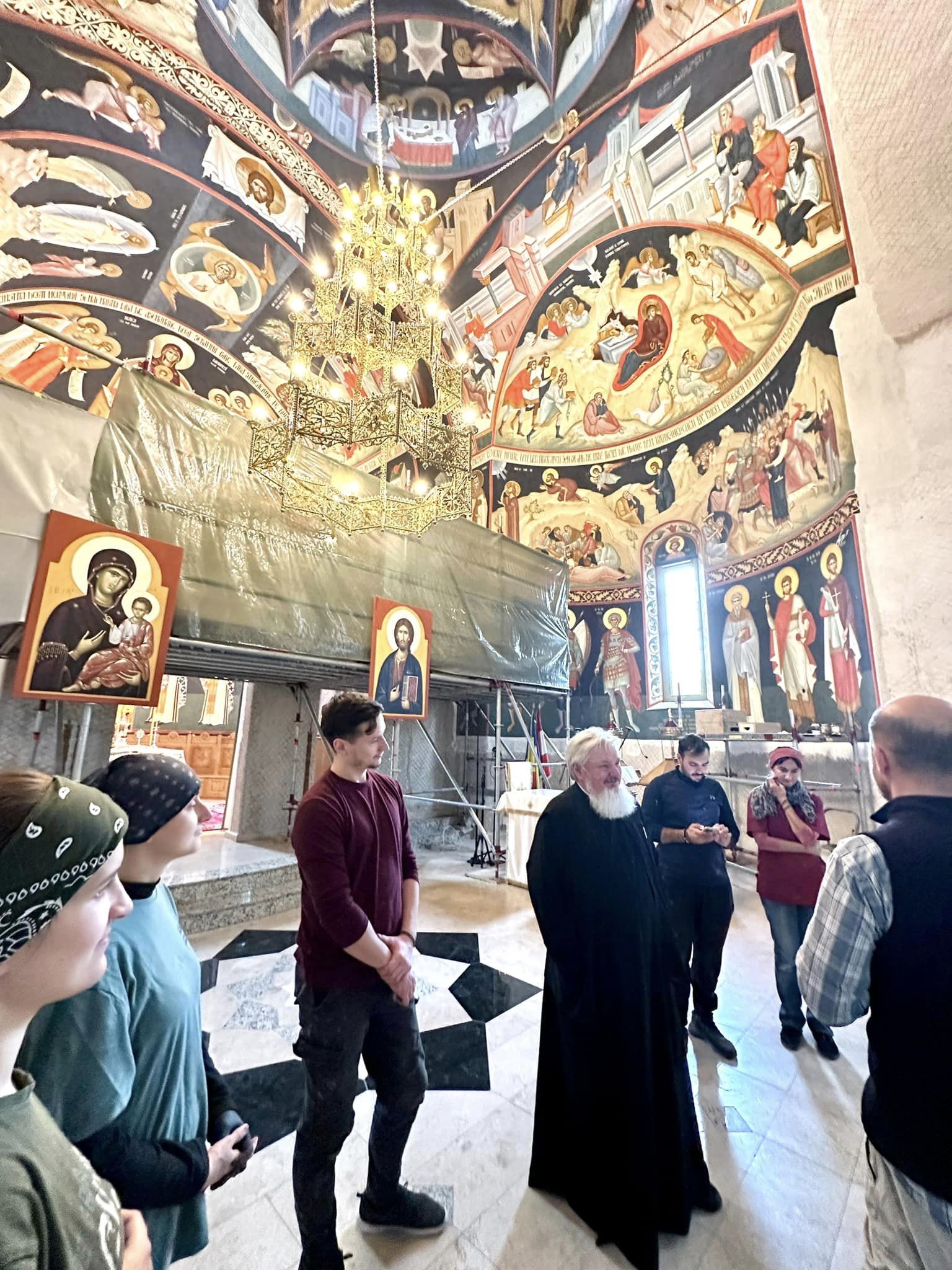 În cadrul scurtei vizite, Preasfinția Sa a admirat cu profundă emoție pictura bisericii aflată în plină desfășurare.