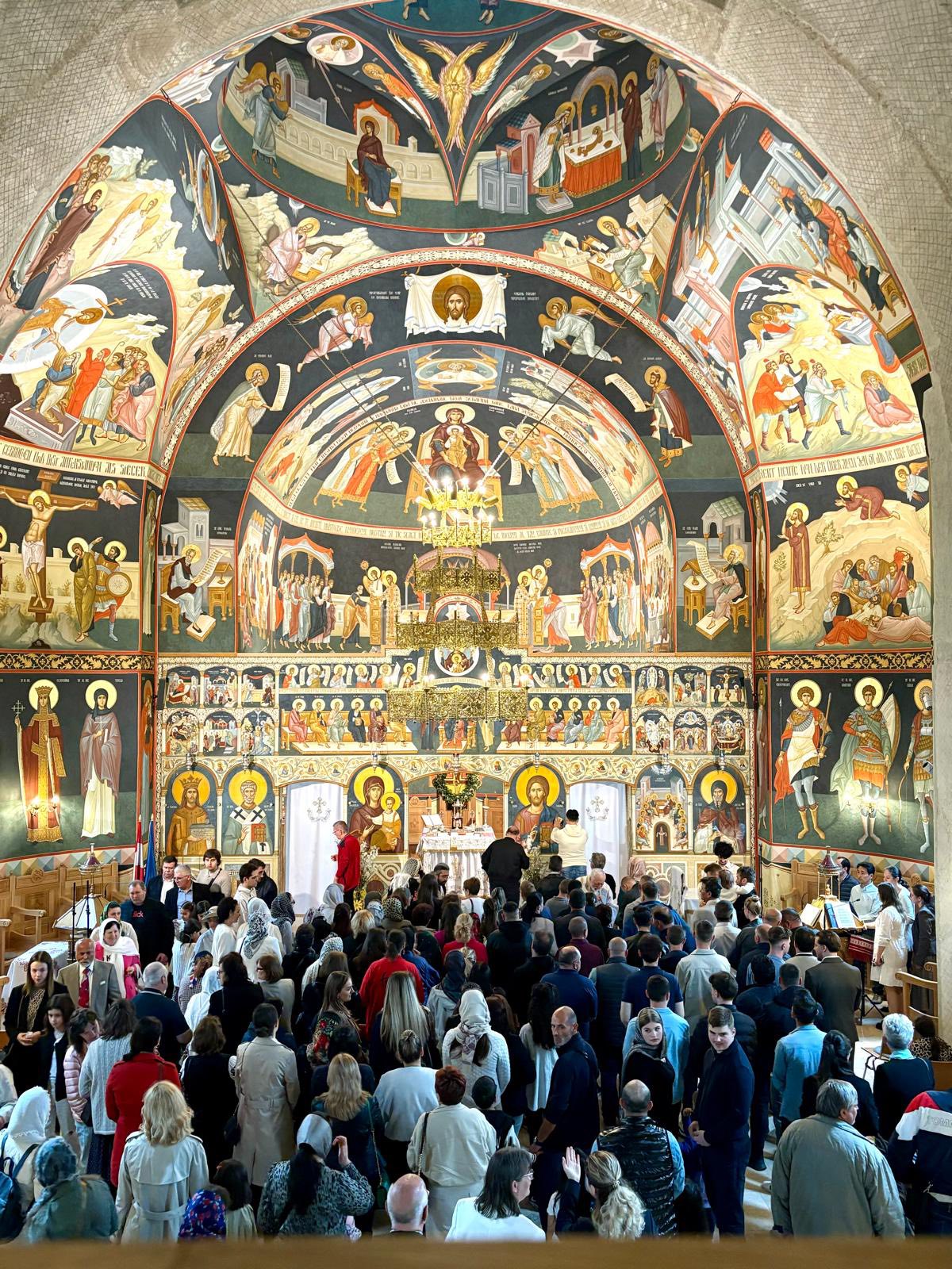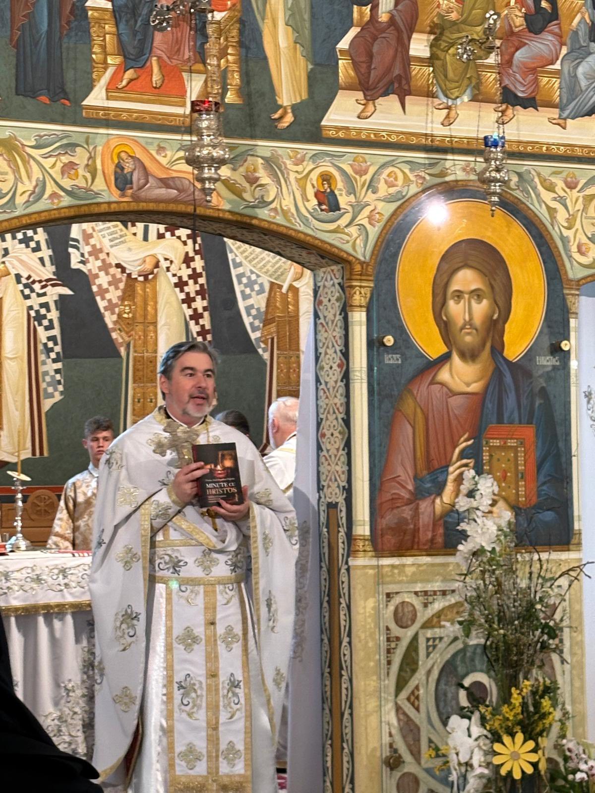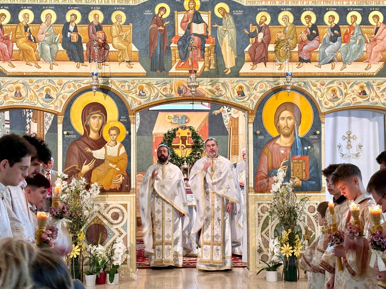 La Sfânta Liturghie săvârșită în biserica nou construită în sectorul 2 al Vienei, invitatul a tâlcuit conținutul Evangheliei Duminicii Femeilor mironosițe, vorbind credincioșilor prezenți la slujbă despre arătările Domnului Hristos după Învierea Sa și explicând de ce prima vestire a Învierii și prima Arătare nu au avut loc înaintea Sfinților Apostoli, ci a femeilor Mironosițe, considerate de cei din jur slabe și nevrednice de crezare – tocmai fiindcă voința lui Dumnezeu de a Se face cunoscut este cu totul diferită de rațiunea omenească: „Pentru că fapta lui Dumnezeu, socotită de către oameni nebunie, este mai înţeleaptă decât înţelepciunea lor şi ceea ce se pare ca slăbiciune a lui Dumnezeu, mai puternică decât tăria oamenilor” (1 Cor. 1, 25).