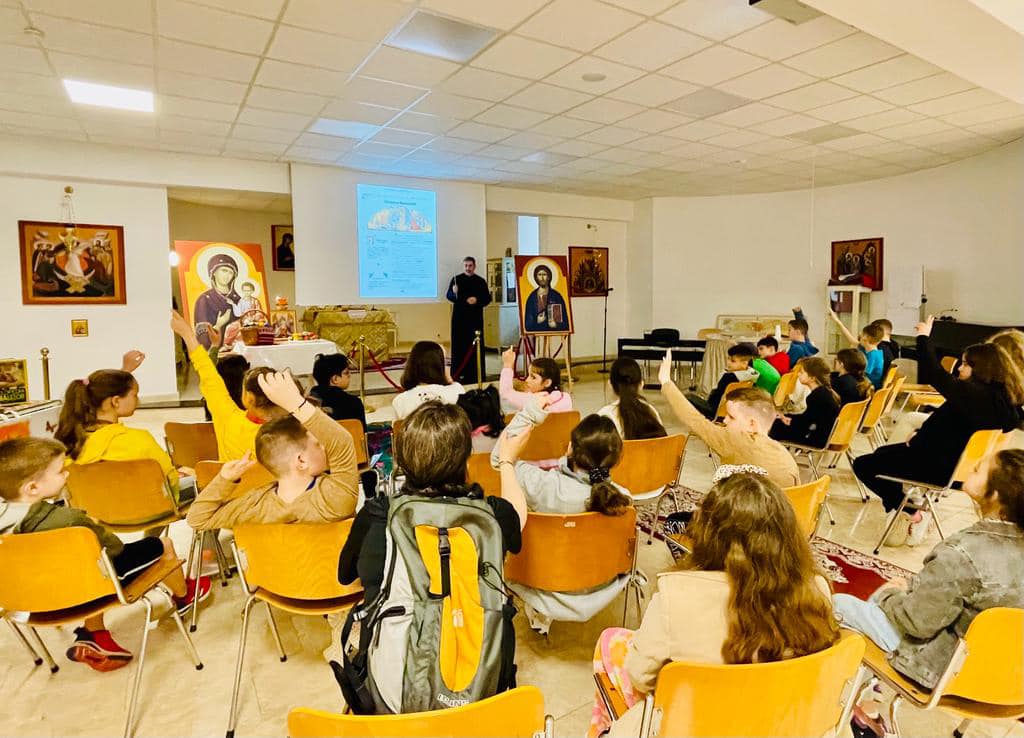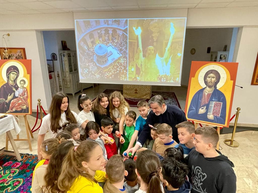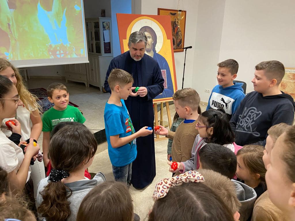 Am avut astăzi (22.04.2023) bucuria de a petrece în tihnă timp prețios cu o grupă de copii din Școala noastră Parohială, aducându-ne aminte de momentele emoționante ale Săptămânii Mari și ale marii Sărbători a Învierii Domnului.