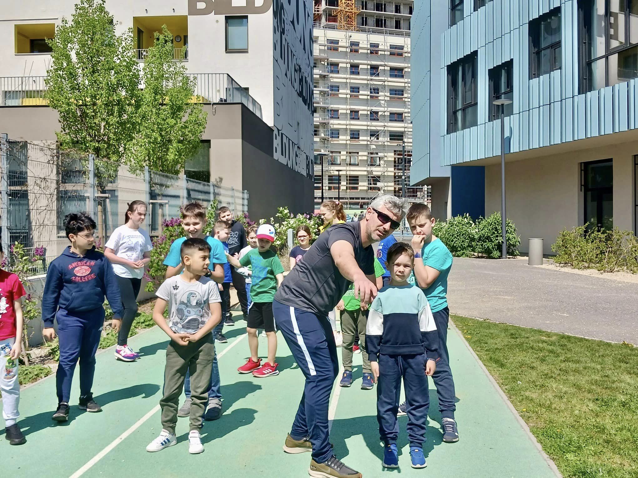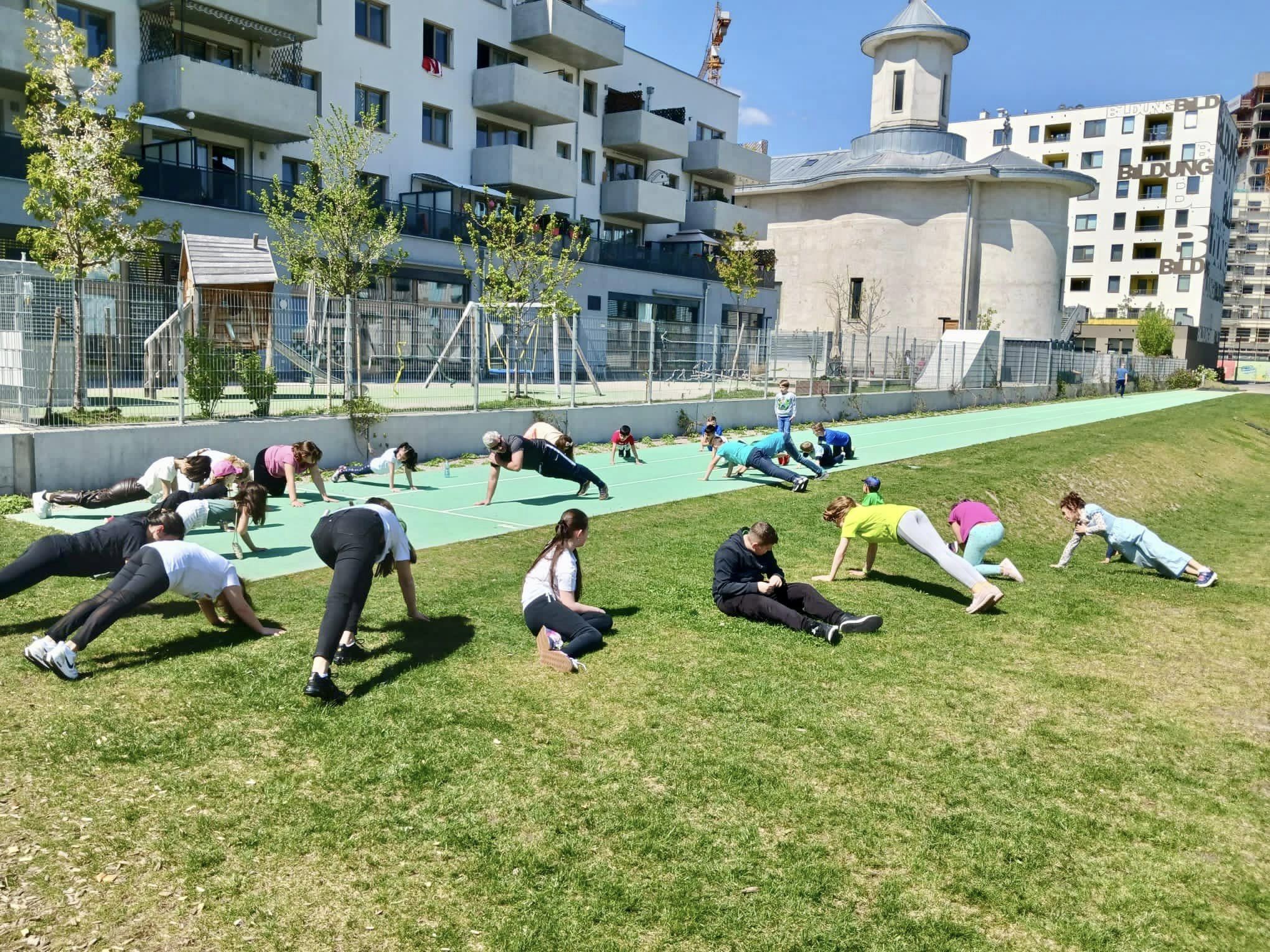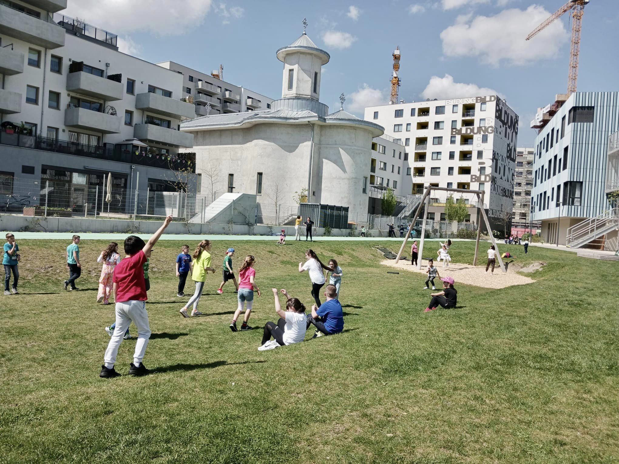 După bucuria ciocnirii ouălor, vremea fiind foarte frumoasă, copii s-au antrenat în parcul din vecinătatea bisericii sub supravegherea și coordonarea Dl. Dr. Cristian Ionuș, căruia îi mulțumim pentru implicare.