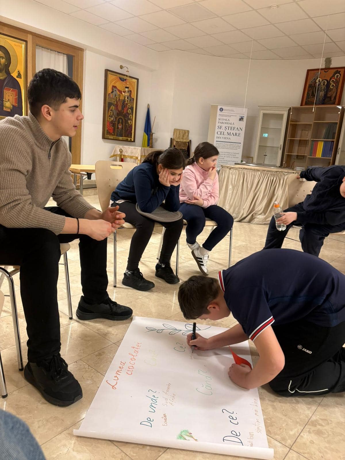 Duminică, după participarea la Sf. Liturghie, tabăra a continuat într-o atmosferă la fel de dinamică, cu activități interactive care i-au ajutat pe copii să-și exprime ideile și să își dezvolte gândirea critică.