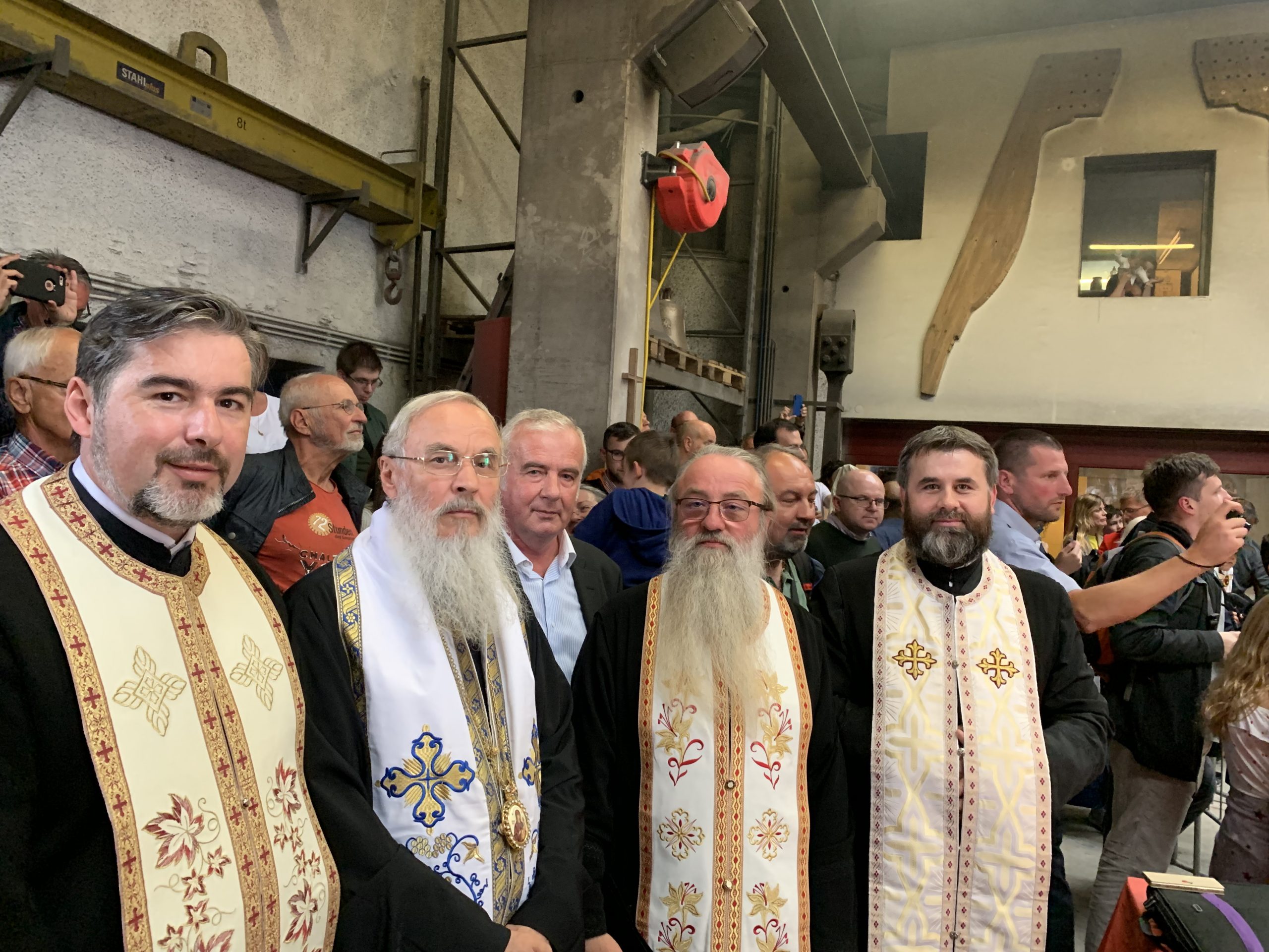 Am avut marea bucurie ca Înalt Preasfințitul Părinte Mitropolit Serafim să fie alături de familiile care au donat aceste clopote și să binecuvinteze această lucrare printr-o rugăciune săvârșită în turnătorie, în prezența familiei Grassmayr, a muncitorilor și a peste 200 de persoane din diferite țări.