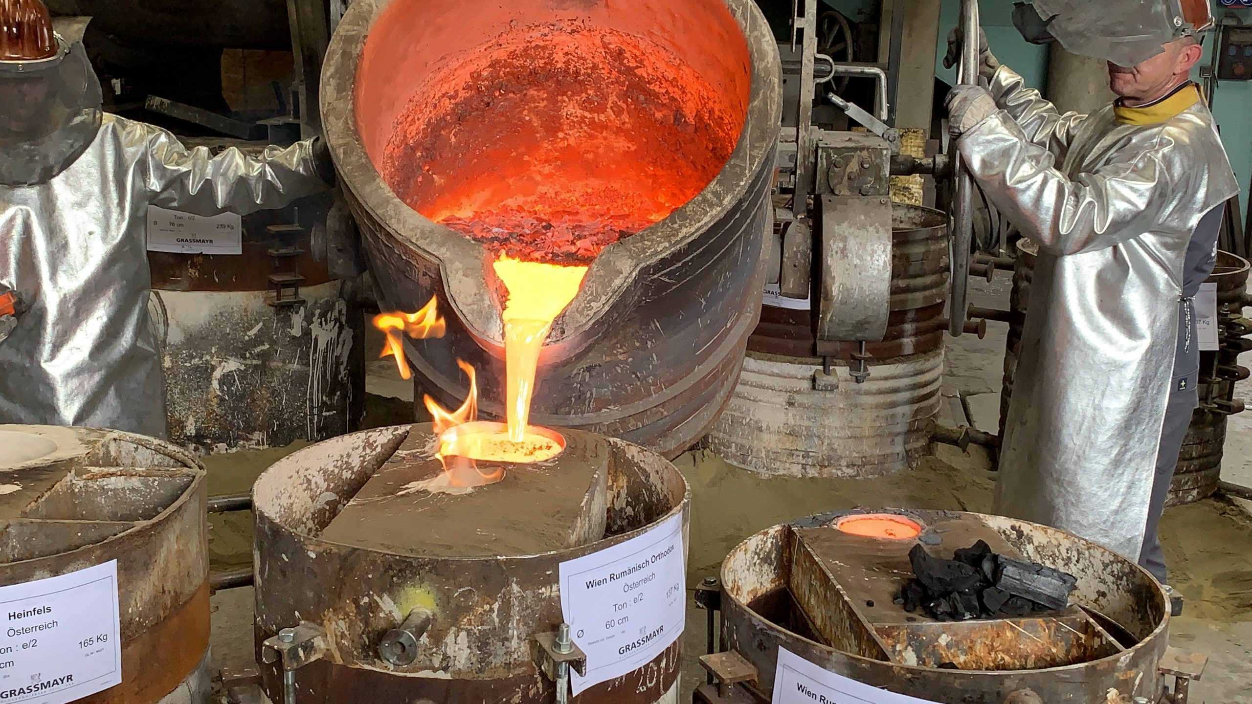 La turnarea clopotelor, pasul cel mai emoționant il constituie momentul in care, aliajul incalzit la o temperatura de 1150 grade Celsius, curge in forma clopotului. Am înțeles din prezentare că importanță aparte asupra calităților clopotelor Grassmayr o are răcirea controlată, într-o foarte lungă perioadă de timp.