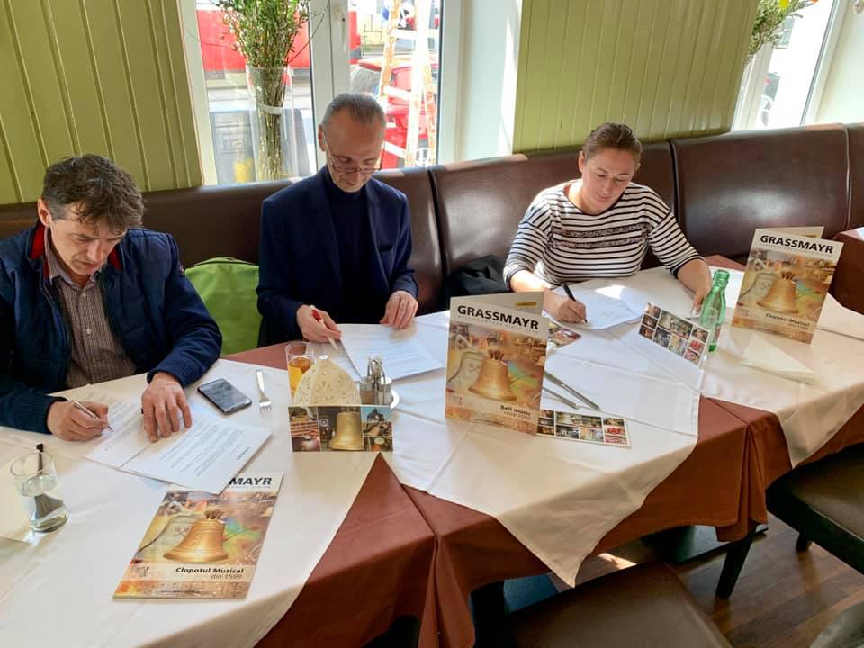 Acest contract a fost semnat de către cele trei familii care doresc să doneze aceste clopote și reprezentanții firmei Grassmayr. Este o mare surpriza din partea acestor 3 familii, cărora le multumim din adâncul sufletului și ne rugăm ca Dumnezeu sa le răsplătească această mare jertfă.