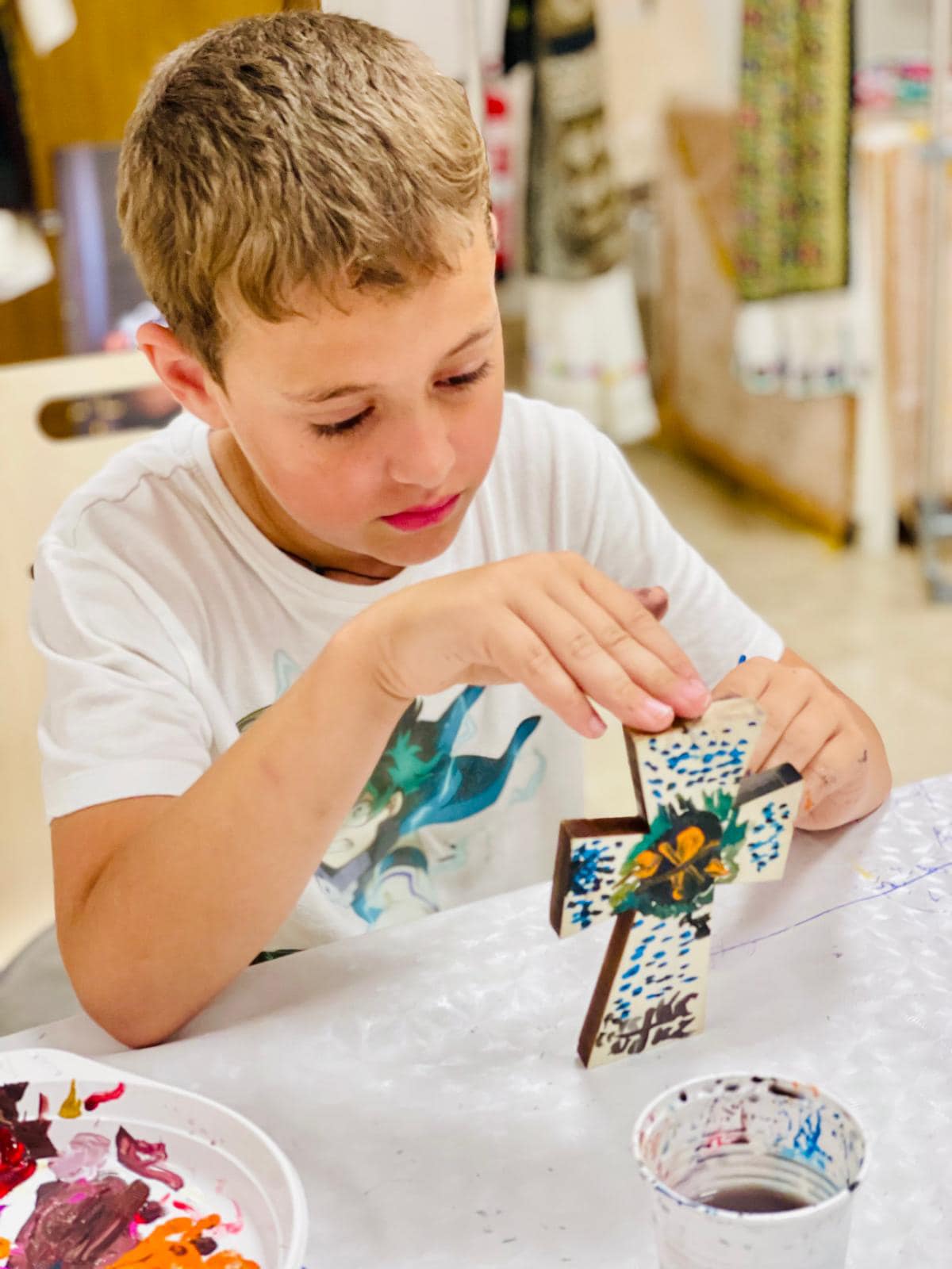 Ultima zi de școală parohială înainte de vacanța mare: Atelier creativ de pictură pe cruce, coordonat de Maica Marina