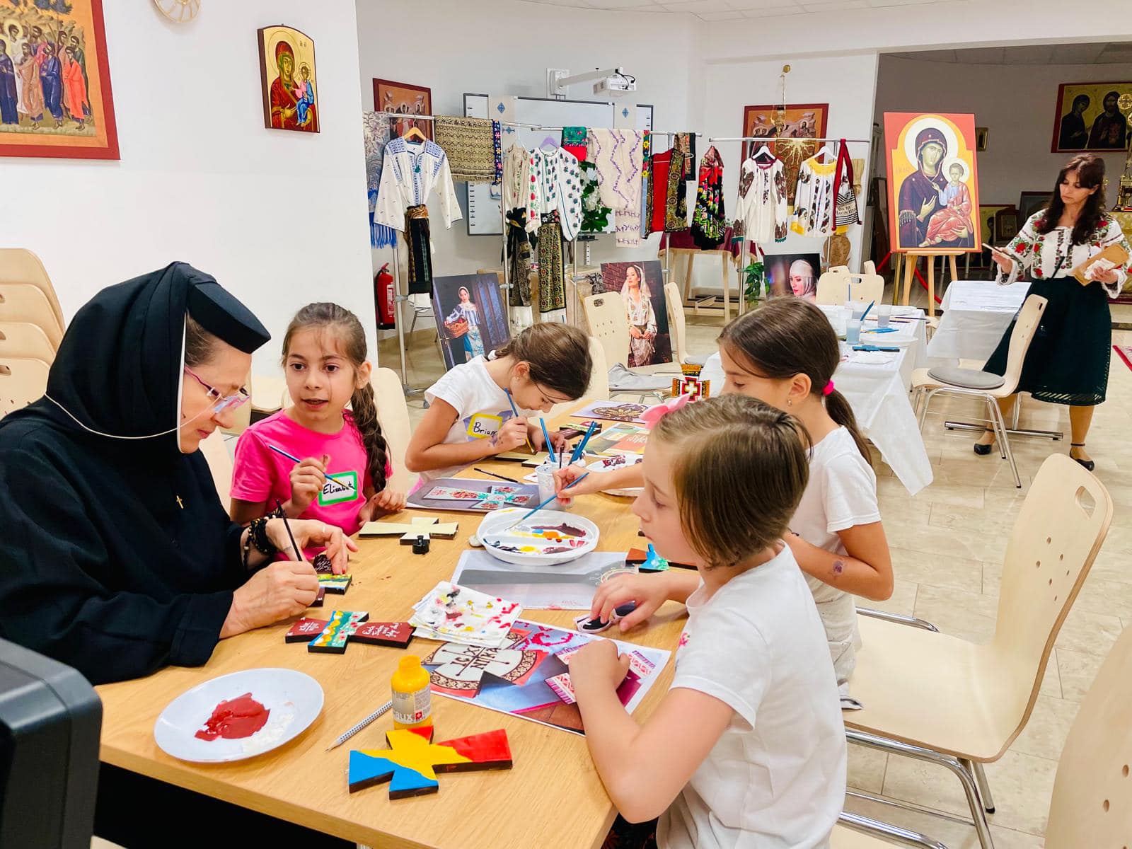 Copii mai mari și tineri au participat cu bucurie la atelierul creativ de pictură pe cruce, coordonat de Maica Marina Muntean, Egumena Mănăstirii „Sf. Martiri Brâncovenide de la Centrul Mitropolitan din Nürnberg. Copiii și tinerii au avut ocazia să-și exprime creativitatea și să își dezvolte abilitățile artistice și și-au întărit legătura cu Dumnezeu și comunitatea bisericească.