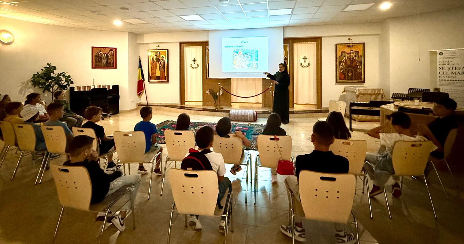 Programul zilei a inclus repetiția corului de copii și tineri „Heruvimii”, cursurile de cateheză și poveste religioasă, atelierul dedicat protejării creației, activități sportive, dar și ateliere de joacă pregătite cu grijă de tinerii voluntari. Ziua s-a încheiat cu surprize delicioase, fructe si pizza, împărțite cu veselie între cei mici.