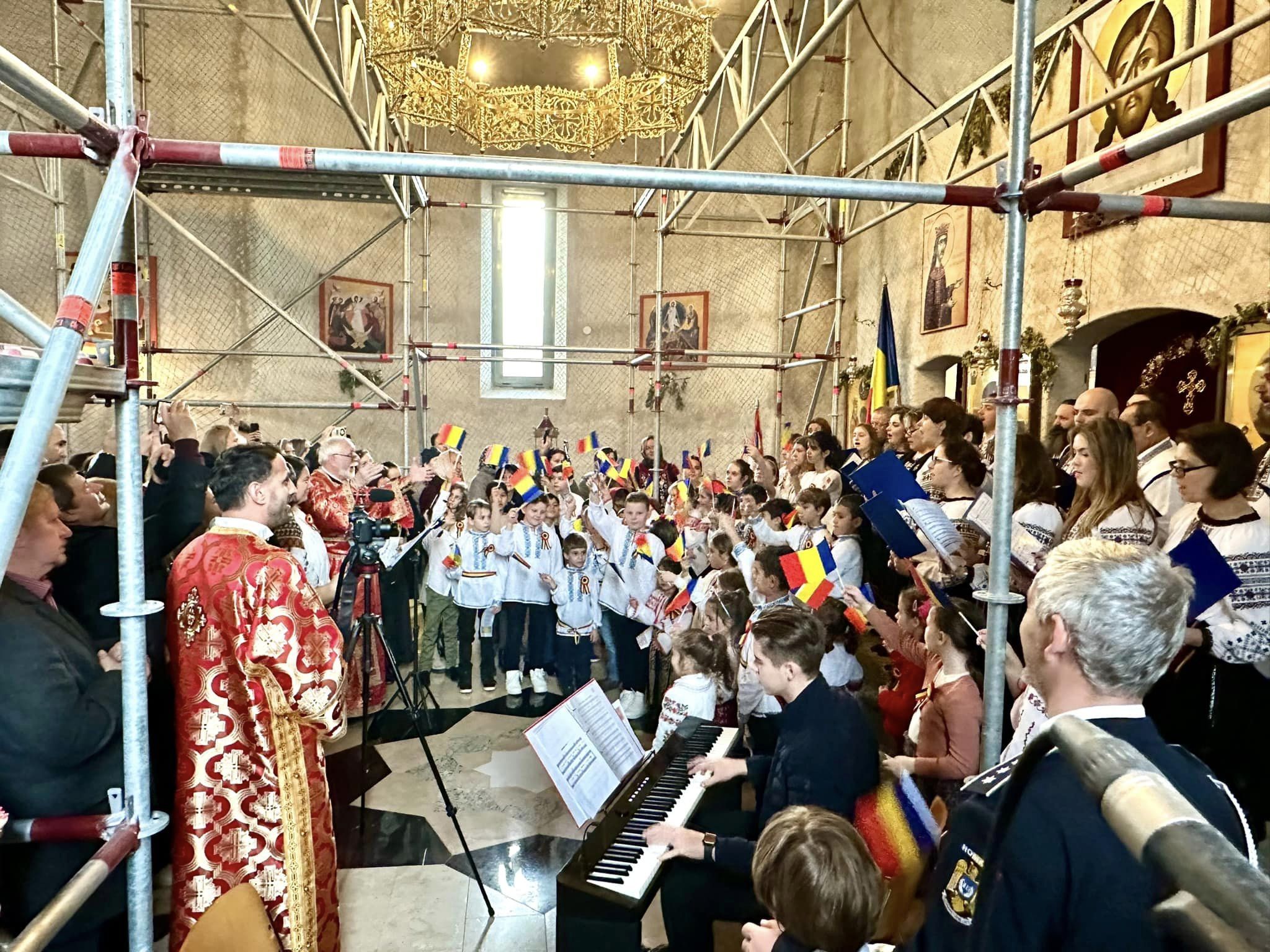 Momentul aniversar a fost bine pregădit de către pedagogii Scolii Parohiale, astfel încât, copiii să înteleagă sensul Zilei Naţionale a României prin citirea și memorarea unor poezii patriotice, confecţionarea stegulețelor, pe care le-au fluturat și înălţat cu mândrie în timpul serbării și prin învăţarea Imnului naţional și a unor cântece patriotice. Astfel pregătiţi și frumos înveșmântaţi în costume naţionale, s-au alăturat Coralei bisericii și au prezentat în faţa credincioșilor programul lor artistic, care a provocat multă emoţie și sensibilitate.